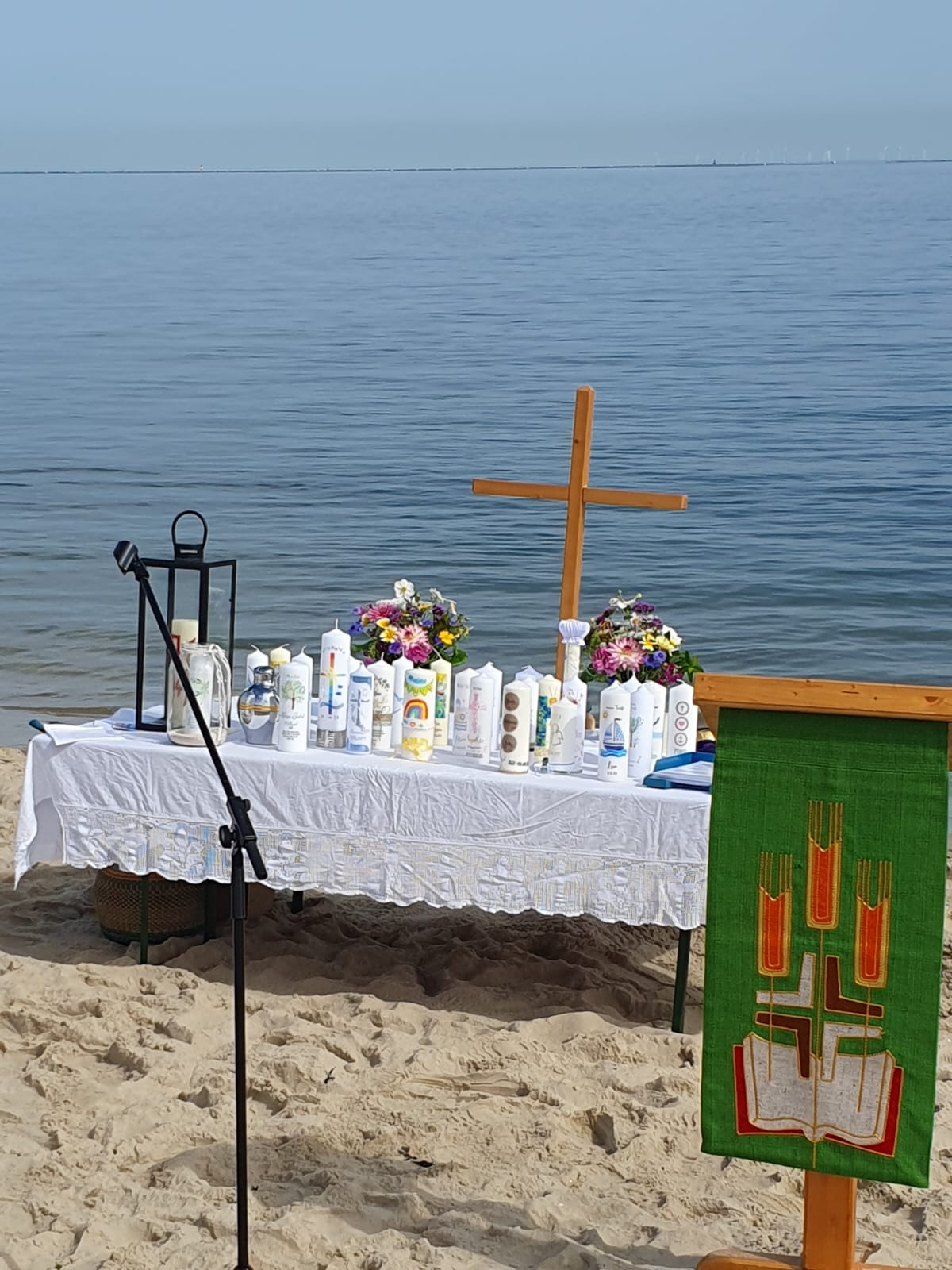 Pastorin Hanja Harke sowie Diakon Fredo Eilts und die Pastoren Thorsten Harland, Jürgen Walter und Stefan Grünefeld tauften im Nordseewasser. Diakonin Veronika Reuter sorgte mit der Teamerin Feemke Klein dafür, dass alle Tauffamilien sich am richtigen Ort einfanden und im Anschluss an die Taufe ihre Taufurkunden erhielten.
